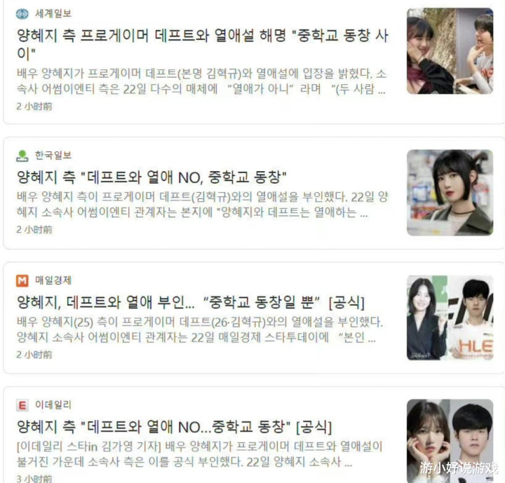当然Deft与杨慧智两人并未官宣恋情,其实早在去年的时候,就有韩国网友曾扒出过两人的恋情,两人穿过同款T恤和同款睡衣,甚至还用过同款浴球,Deft还曾在视频网站搜索过杨慧智,当时两人的绯闻不断被各大媒体争相报道,不过当时杨慧智的经纪人进行了出面辟谣,称Deft和杨慧智只是初中同学,从小时候就是好朋友,至于恋情关系只是捕风捉影而已。